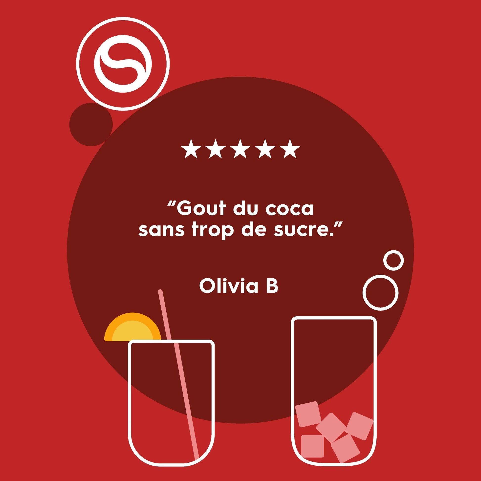 Transformez votre eau pétillante en votre boisson favorite ! Préparez votre eau gazeuse avec la machine SodaStream, puis ajoutez un bouchon doseur de concentré et dégustez une délicieuse boisson pétillante.