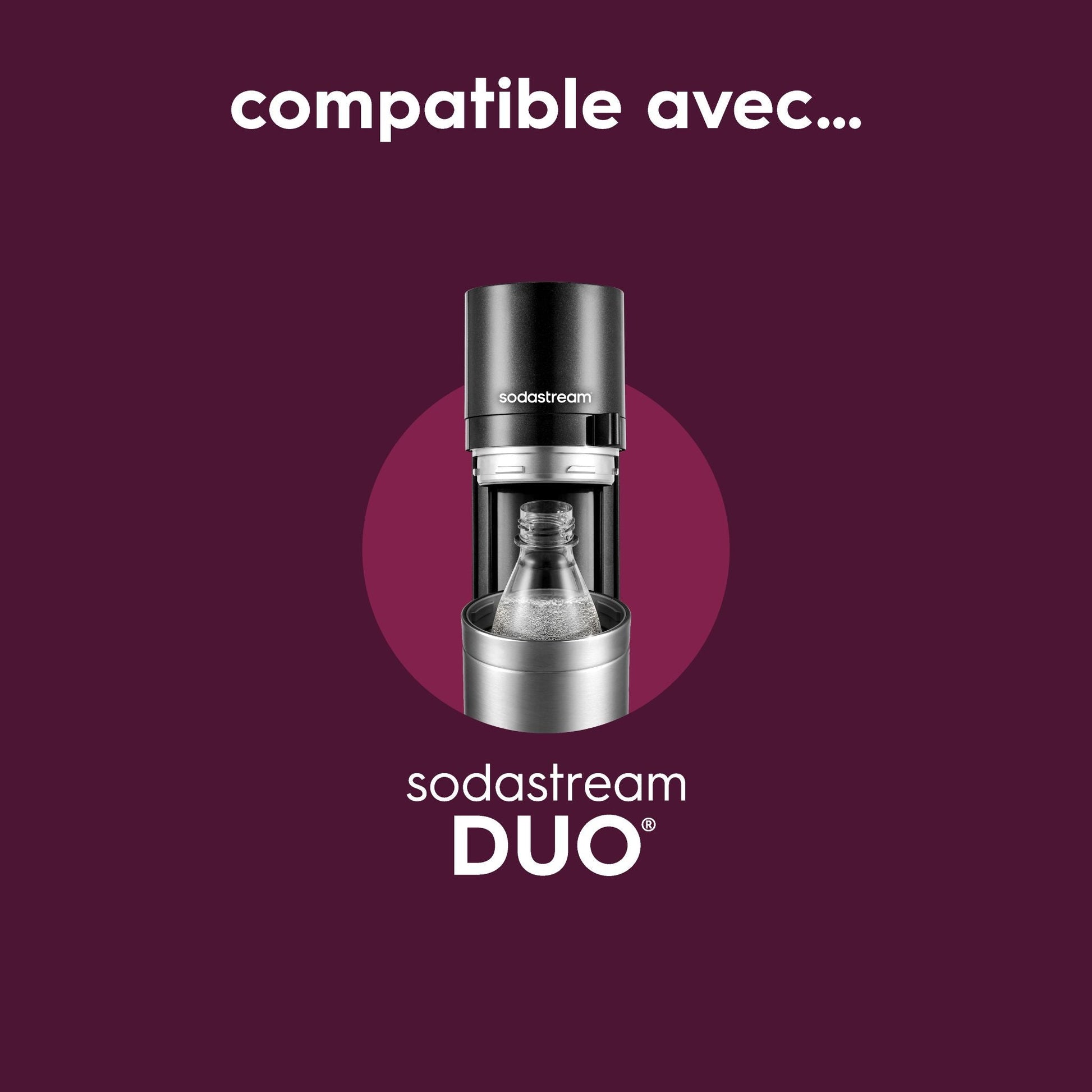 Cette carafe en verre au design élégant vous permettra d'en finir avec le plastique à usage unique et de préserver vos bulles. Elégante, réutilisable à l'infini, lavable au lave-vaisselle, cette carafe vous offre une capacité d'1 Litre. Elle est uniquement compatible avec la machine DUO.