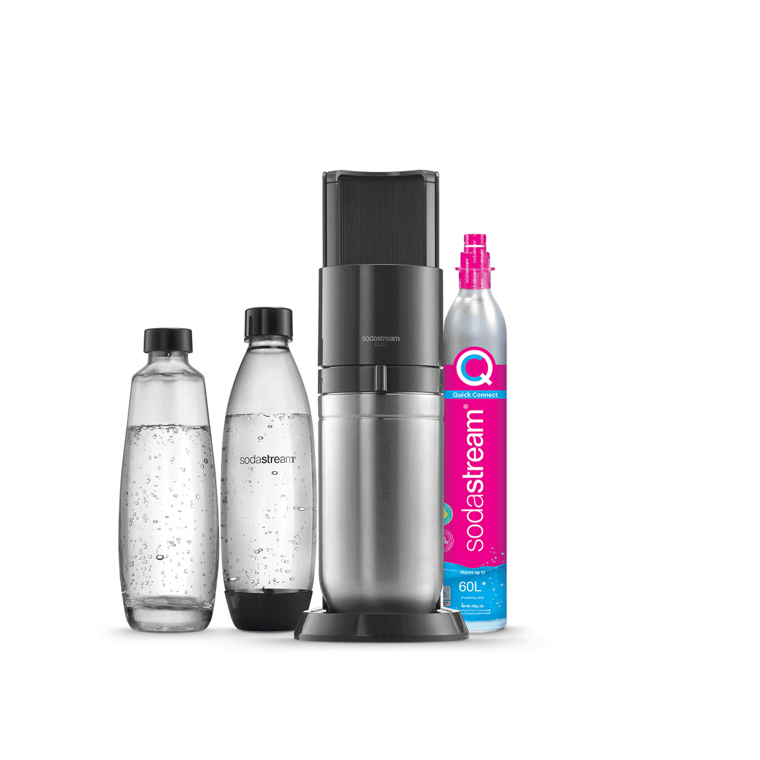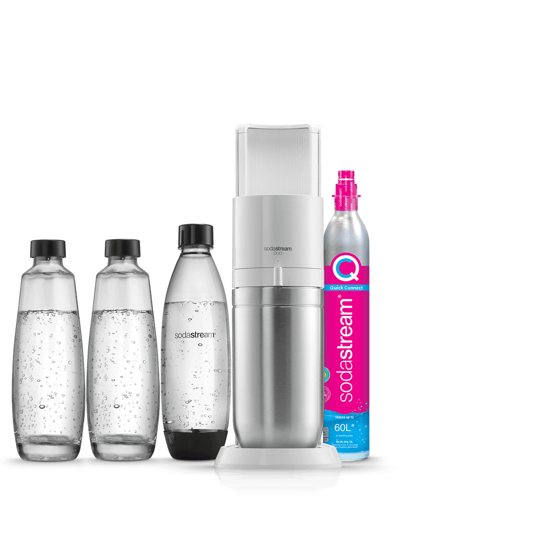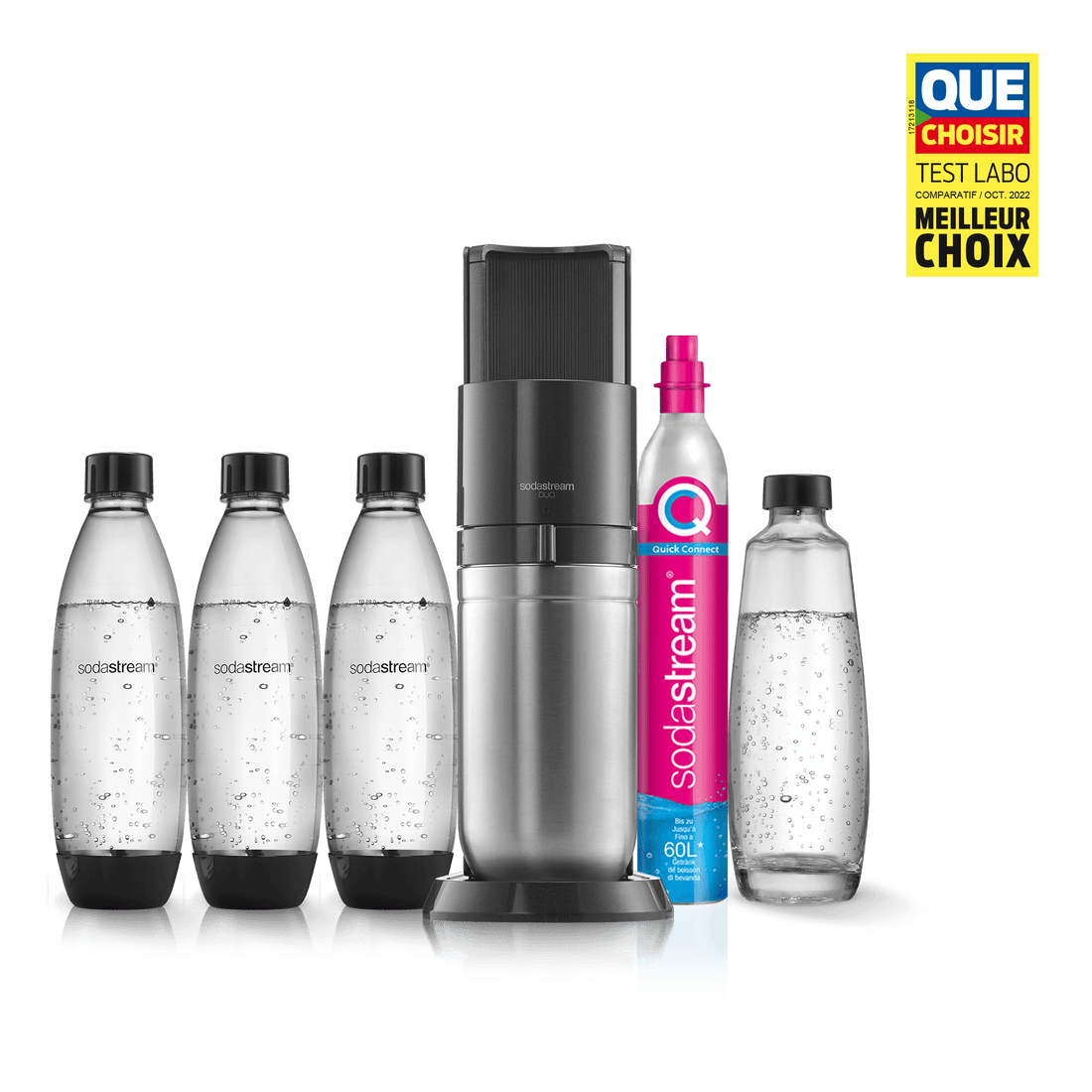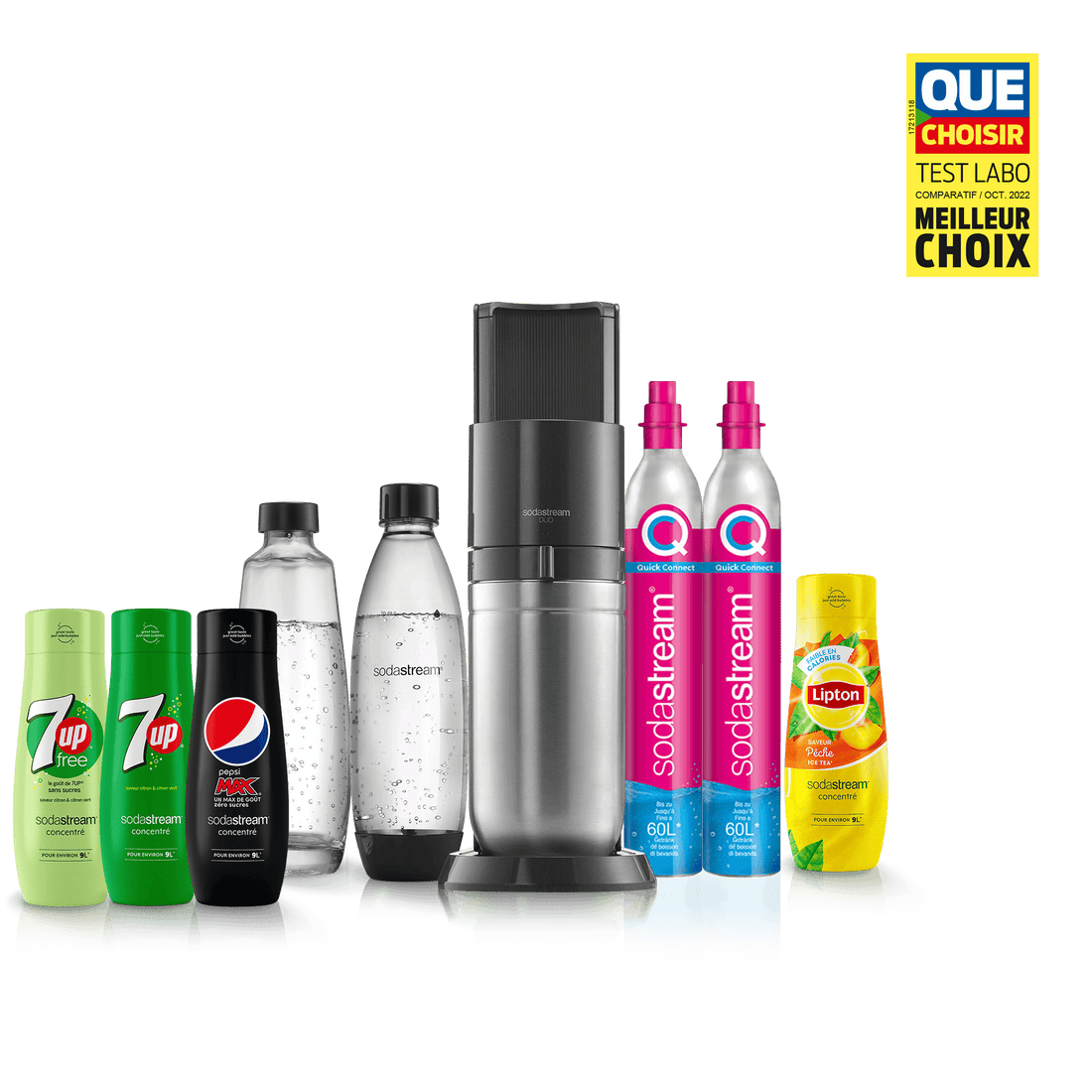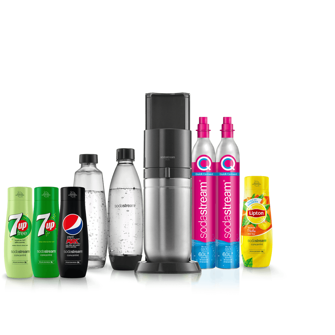 Vous ne pouvez utiliser la recharge de gaz Quick Connect de SodaStream qu’avec la machine à gazéifier SodaStream DUO™. Les recharges de gaz à système de vissage ne sont pas compatibles avec la machine SodaStream DUO.