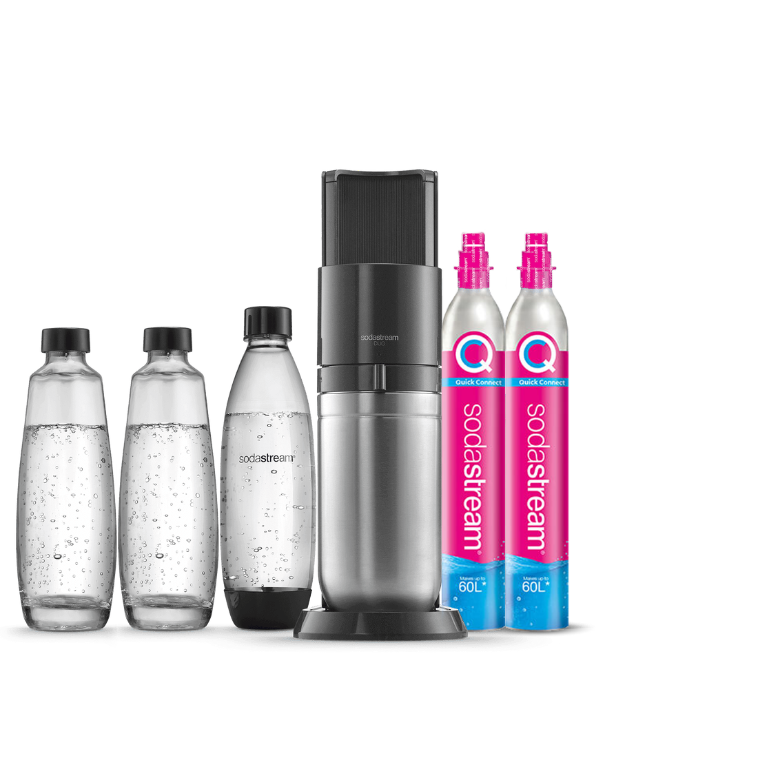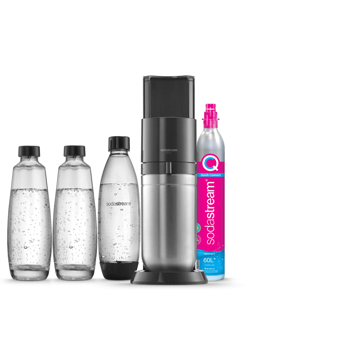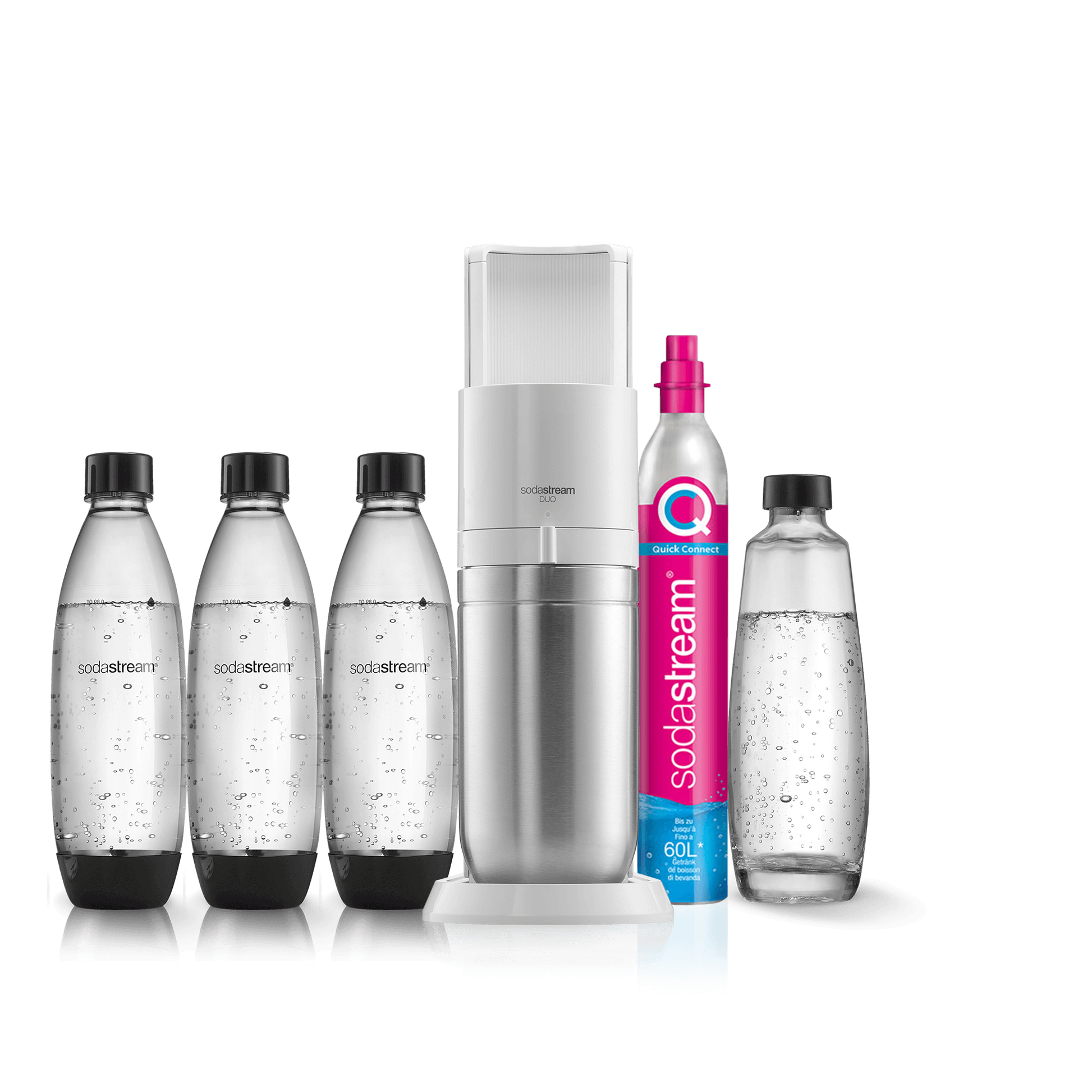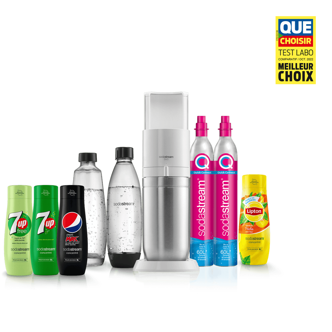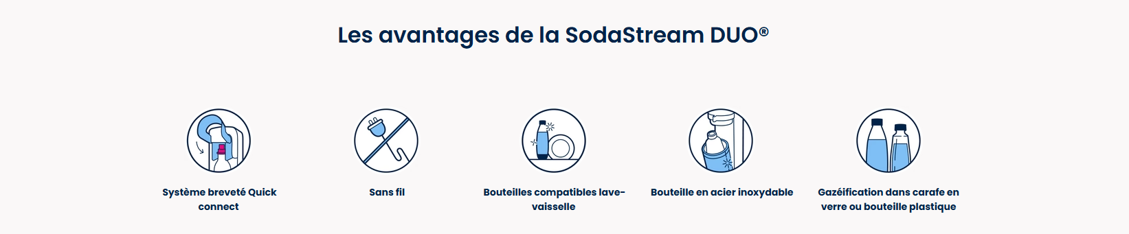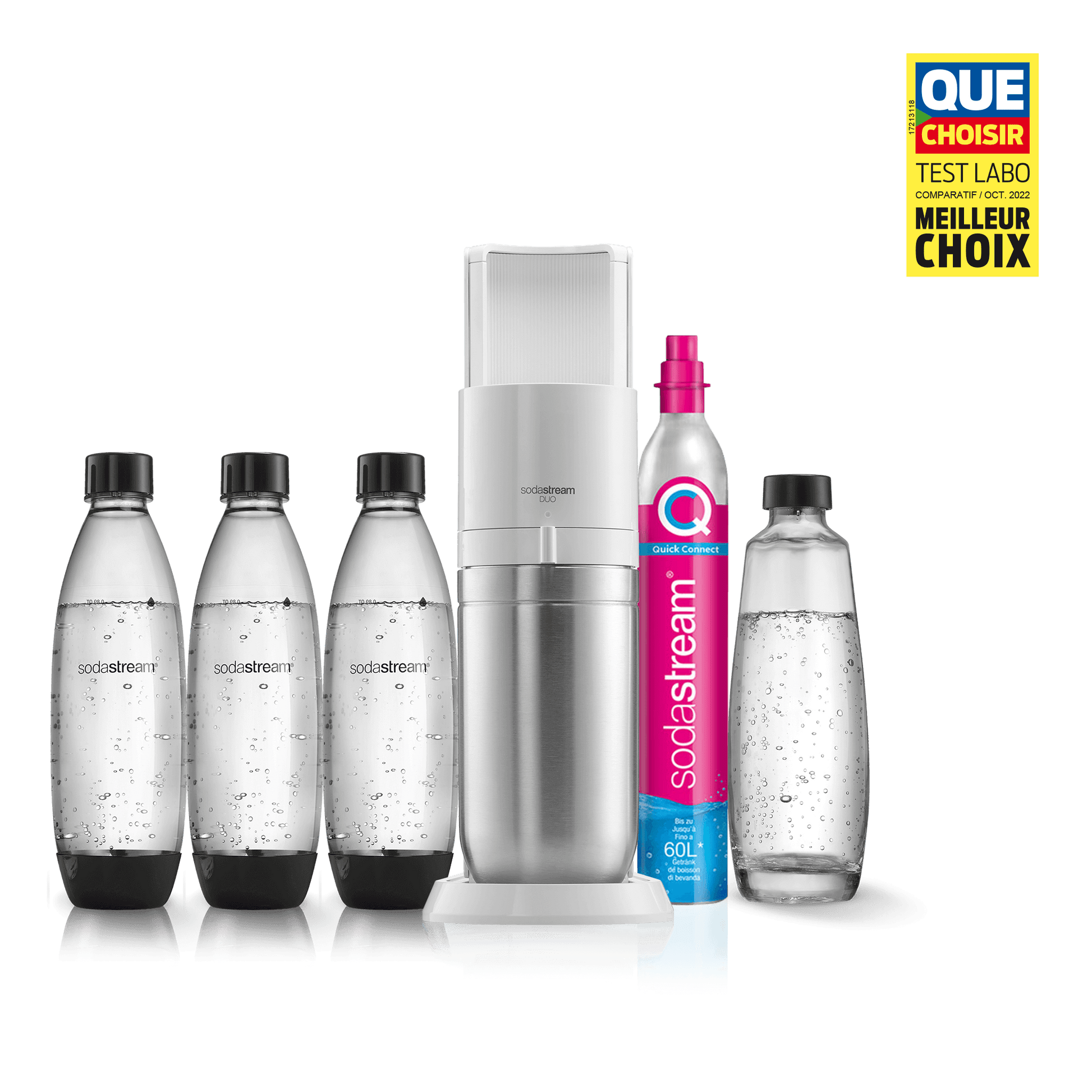 Vous ne pouvez utiliser la recharge de gaz Quick Connect de SodaStream qu’avec la machine à gazéifier SodaStream DUO™. Les recharges de gaz à système de vissage ne sont pas compatibles avec la machine SodaStream DUO.
